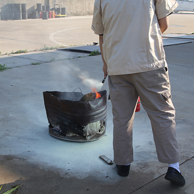 此外,本次消防安全綜合演練也對員工進行了滅火器的操作教學,并進行了實戰演練。